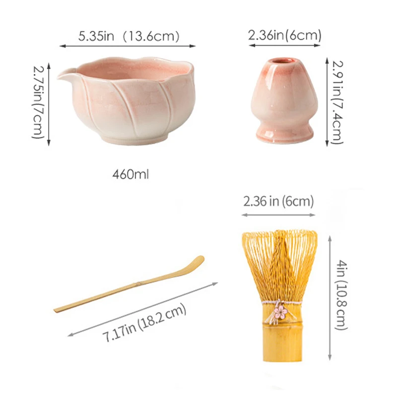 【Meet Your Whisking Wonder】With its comfy handle, this whisk is a breeze to use. It coaxes out matcha's rich foam and deep flavor for a smooth, clump-free sip. Because great matcha should be effortless.【Goodbye, drips! Hello, perfect pours】Our matcha bowl set is thoughtfully designed with a thickened eagle-beak spout for a clean, controlled pour. Plus, the exquisite glaze makes every whisking session a beautiful ritual.【From First-Time Whisk to Tea Mastery】This is your all-in-one matcha set kit. All the tools, zero guesswork. Designed for beginners and pros alike to create the perfect bowl. Find your calm, one bowl at a time.【We Keep It Natural, So You Can Keep It Zen】Made from good-for-you materials: lead-free glaze that won’t stain + earth-friendly bamboo that’s totally handmade. Easy-clean, easier living.【The Full Matcha Experience】Your complete kit includes: 1 matcha bowl, 1 bamboo whisk, 1 ceramic holder,  and 1 scoop(Chashaku). This is the basic configuration