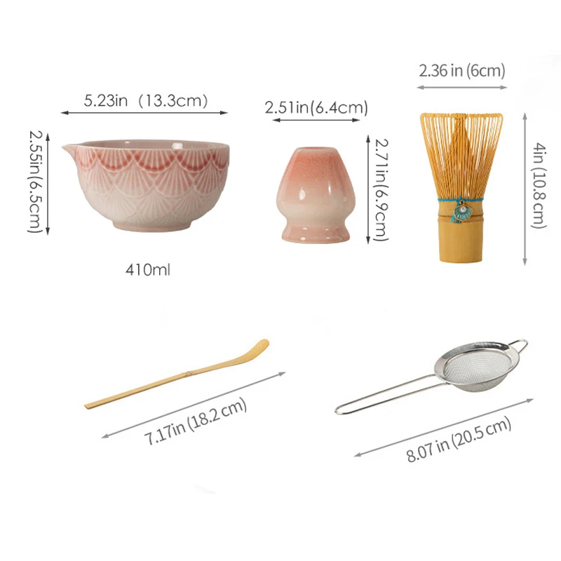 【The Full Matcha Experience】Your complete kit includes: 1 matcha bowl, 1 bamboo whisk, 1 ceramic holder, and 1 scoop(Chashaku). This is the basic configuration